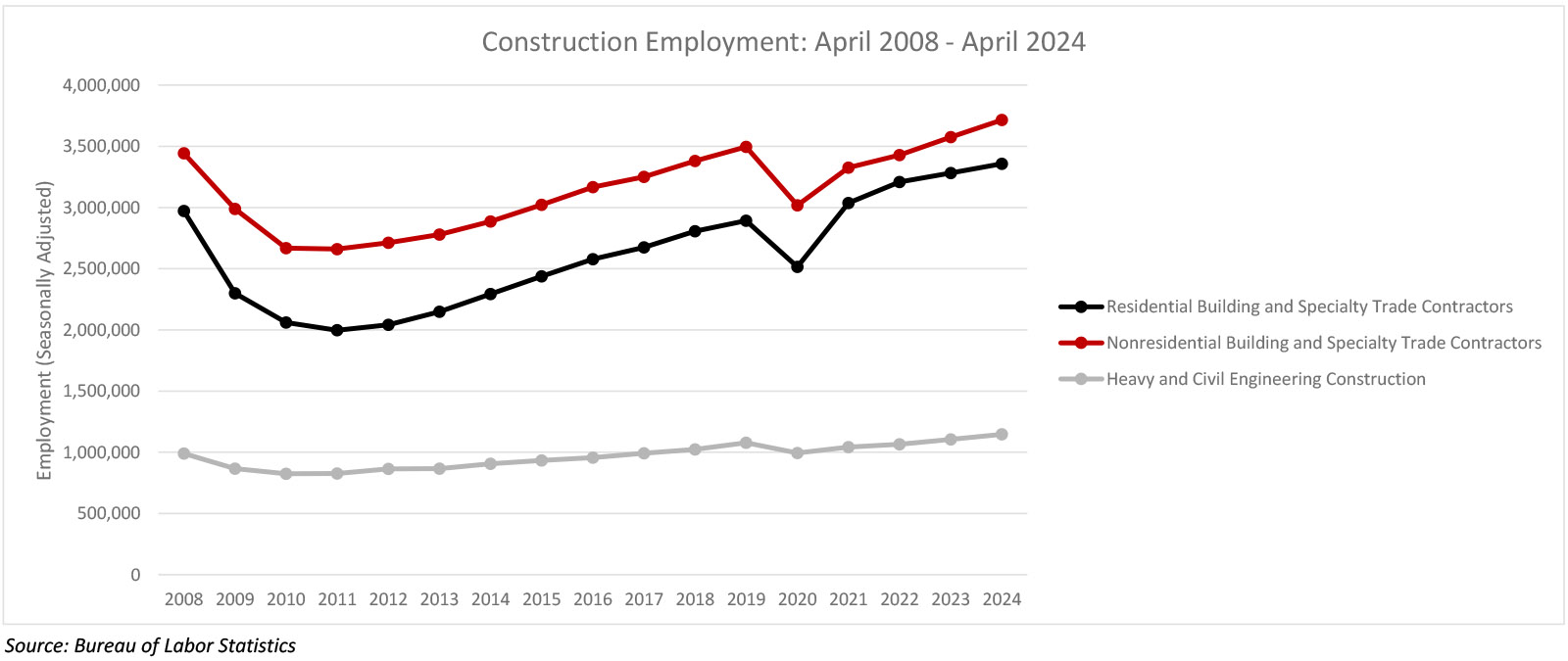 Nonresidential Building, Specialty Trades, and Heavy & Civil Engineering Construction Contractors Increase Headcount, While Monthly Employment Declines at Residential Specialty Trade Contractors