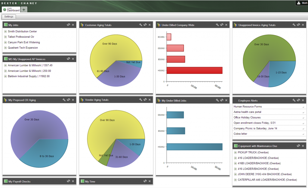 The Spectrum Dashboard is a key feature of every Spectrum Construction Software system. Licensed users enjoy full Dashboard functionality including the ability to drill down to financial or operational details directly from Dashboard apps. “To us, the Dashboard is more than a nice screen to see when you log in,” said Chaney. “It’s an intelligent, flexible and accessible portal to help you manage a complex work and information. And it is a portal that we will continue to build on. Look for new Dashboard features from us in the near future.”
