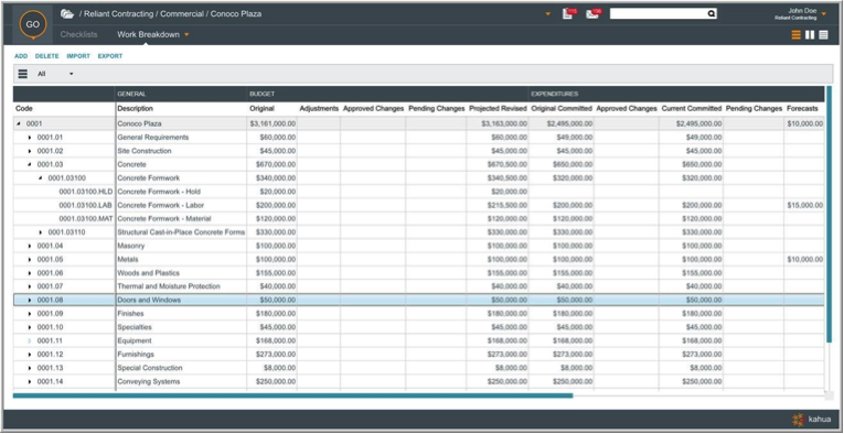 The Kahua Cost Management Suite is a bundle of applications that allows you to manage and track job cost documents on construction projects. These applications include standard configurations which allow you to use them out-of-the-box with little to no setup required. Kahua also enables the data to be easily shared across apps internally and with other external companies who own the same apps.