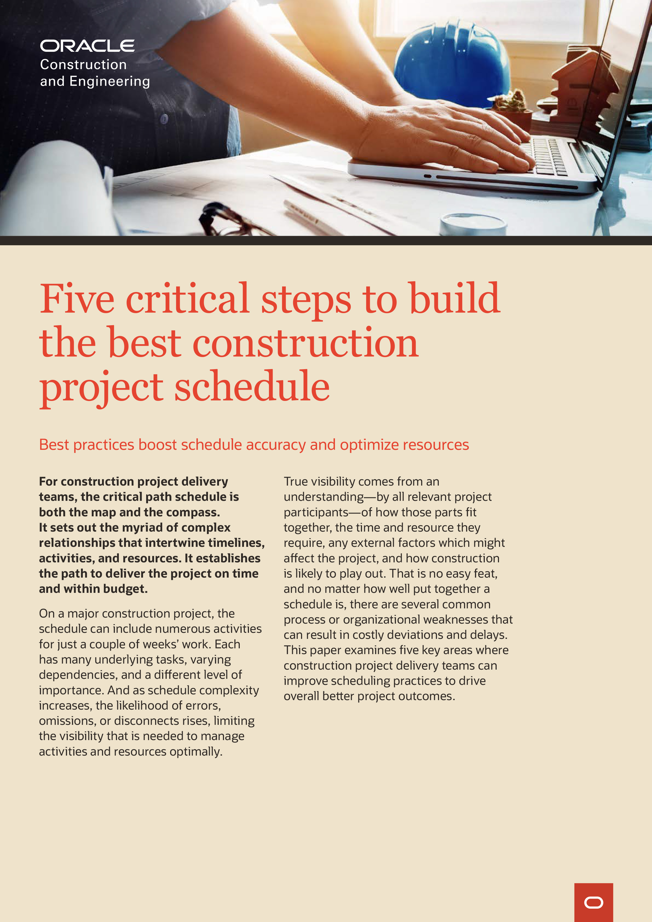True visibility comes from an understanding—by all relevant project participants—of how those parts fit together, the time and resource they require, any external factors which might affect the project, and how construction is likely to play out. That is no easy feat, and no matter how well put together a schedule is, there are several common process or organizational weaknesses that can result in costly deviations and delays. This paper examines five key areas where construction project delivery teams can improve scheduling practices to drive overall better project outcomes.