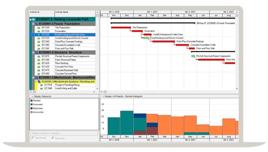 Supporting both top-down and bottom-up resource request and staffing processes, Primavera P6 EPPM makes it easy for project and resource managers to communicate their requirements and decisions throughout a project’s lifecycle. By providing a graphical analysis of resource and role utilization, Primavera P6 EPPM helps project teams manage resources in a dynamic environment. This allows managers to see where resources are being used across all programs and projects, as well as their forecasted future use. Because all information is located in one centralized system, resource conflicts become apparent to project and resource managers, eliminating unexpected delays or unforeseen resource limitations. The result: greater visibility into resource demand and capacity means maximized resource use.