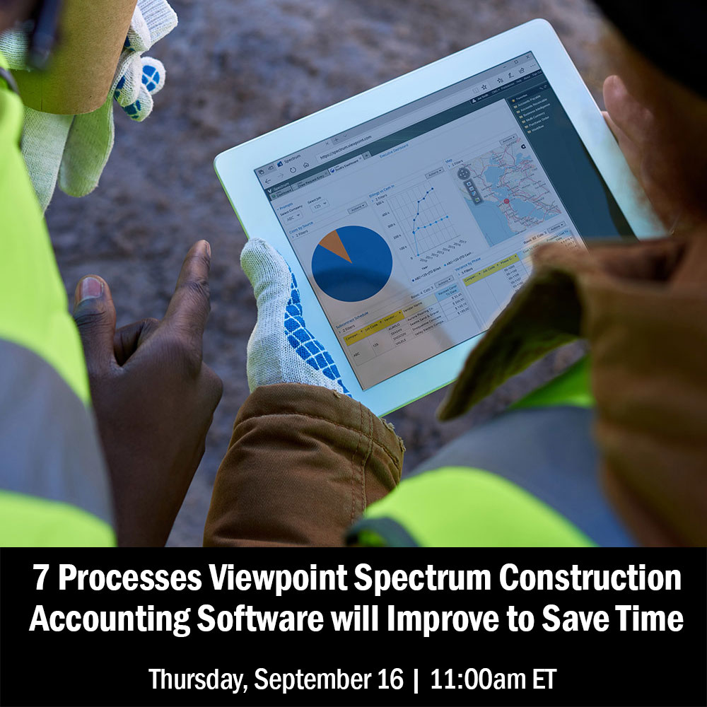 Many contractors turn to Excel and disconnected third party applications to track and produce Job Cost Reports and other reports required by state and federal organizations as well as prime contractors. This results in duplicate work, rekeyed data leading to potential errors, and data that is not real time. If you are relying on Excel or disconnected apps, join us on September 16th to see Viewpoint Spectrum.